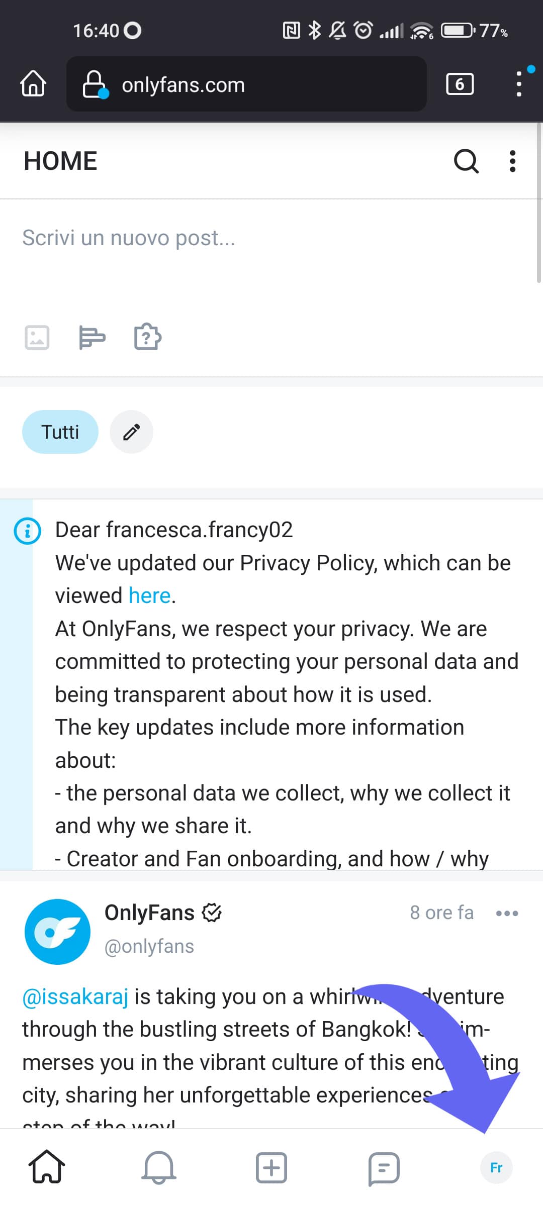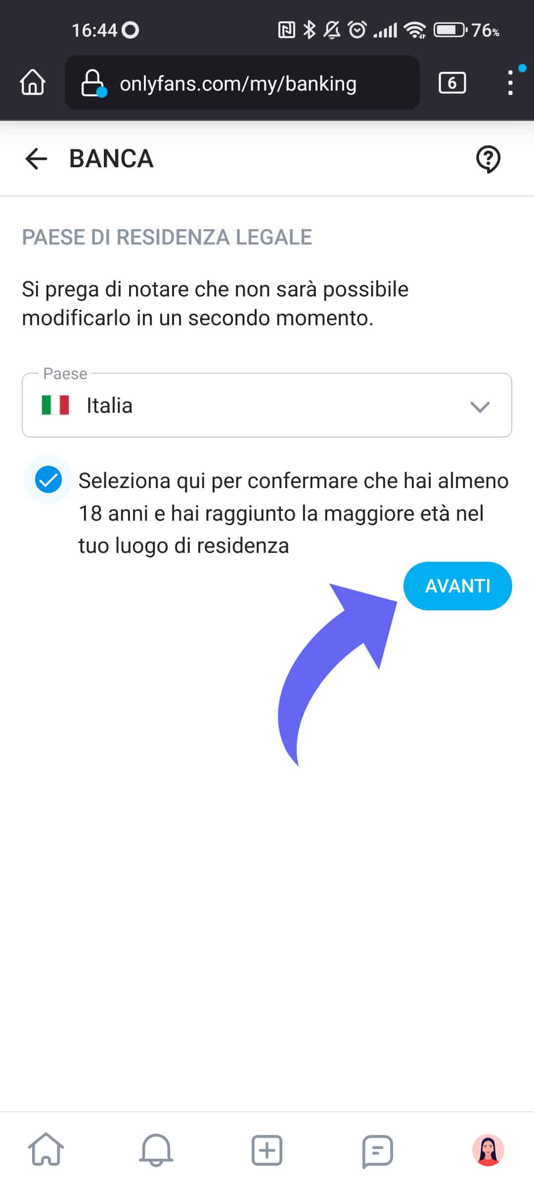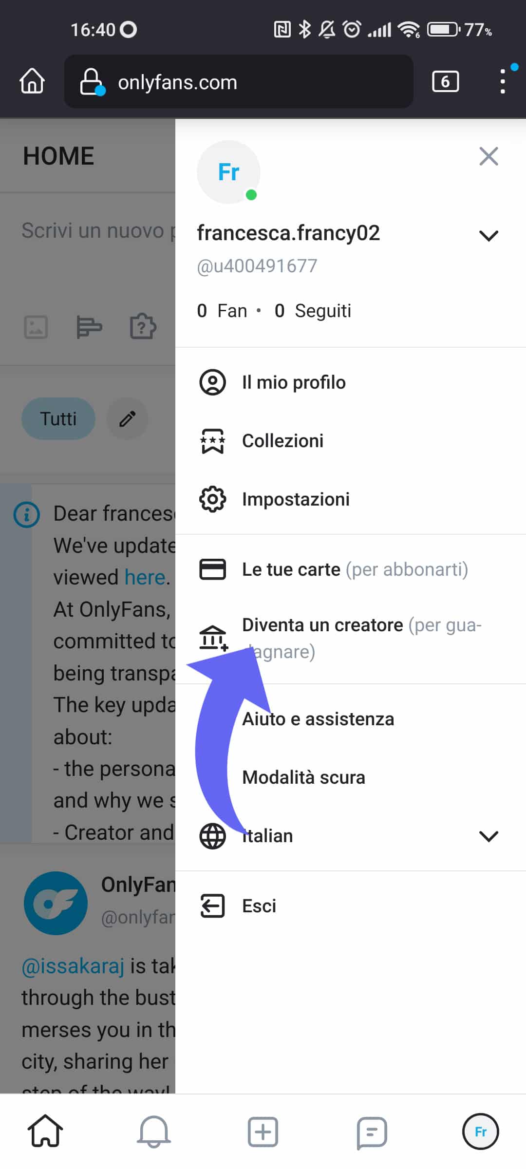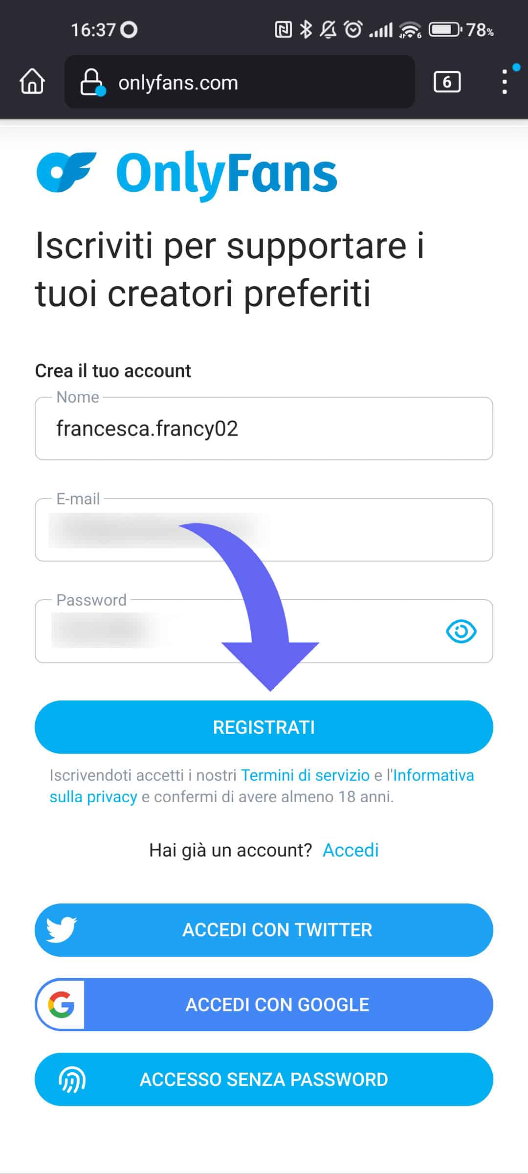 Iscrizione su OnlyFans: