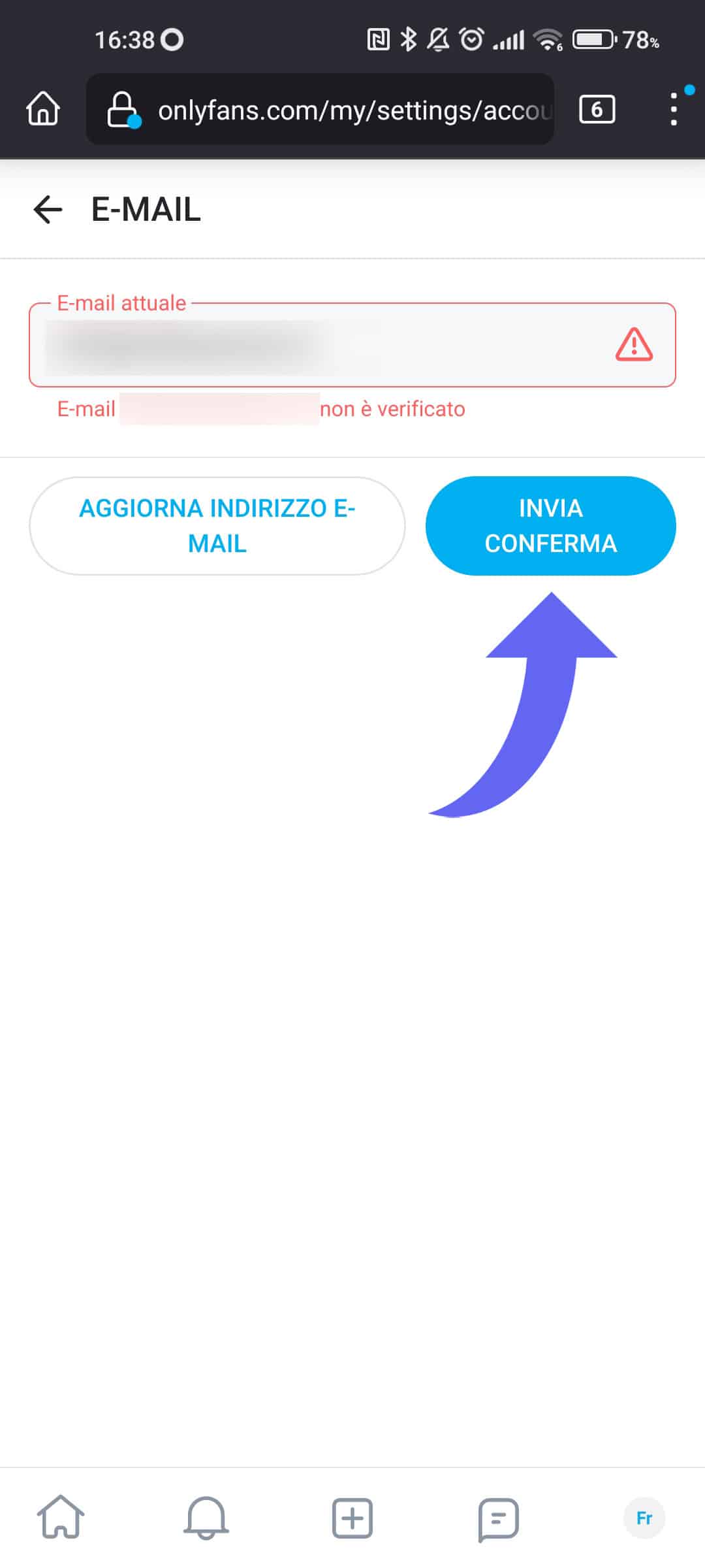 Clicca sul pulsante "Invia conferma"