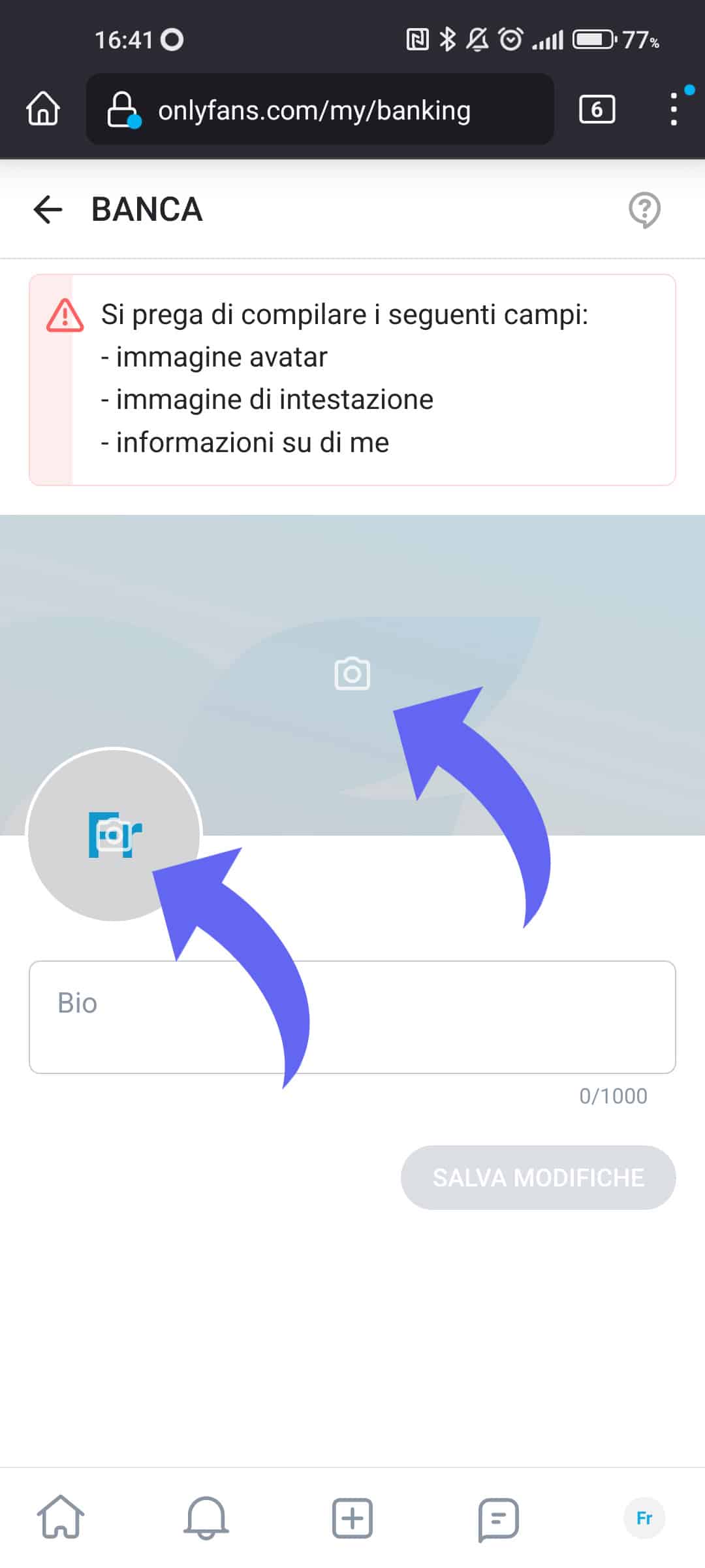 Una volta che ti è stato validato l’account, dovrai andare sulle impostazioni account, cliccare su “Banca”, ed impostare il metodo di pagamento con cui OnlyFans ti invierà i tuoi guadagni.