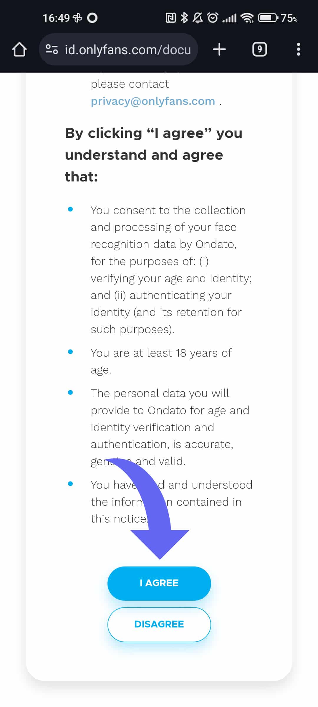 Clicca sul pulsante "I agree"
